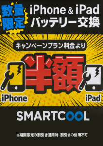 iPhone・iPadのバッテリー交換が半額になる超お得セール開催中です!!
